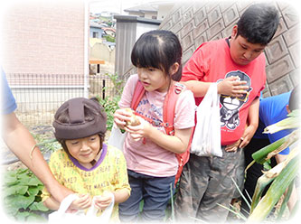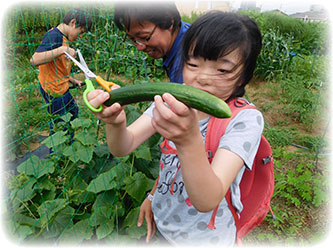 浅川にある畑を借りて農業体験も行なっております。お子様達と一緒に、種まき→苗の植え付け→収穫までを一緒に行います。自分で育てた野菜が収穫できた時の嬉しさを感じていただき、収穫できた野菜は、ご家庭でご家族と一緒に食べていただきます。