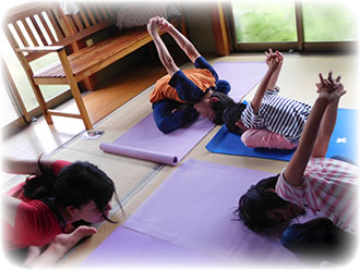 3か月に1回のペースでお子様と一緒に保護者様もヨガに参加して頂き、心も体もリフレッシュして頂きたく思っています。保護者様のみの参加も大丈夫です。参加お待ちしております。