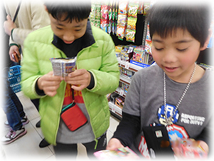 学校休業日に事業所を利用して頂いたお子様と一緒に、近隣のスーパーまでみんなで歩いてお買物へ行きます。 決められたお金の中で、その日のおやつで食べる物を真剣に選び、計算や支払いまでスタッフと一緒に自分で行います。 とても、生き生きとしたお子様たちの表情を見ることが出来ます。今後も、お子様たちが社会性を身に付けることができるよう様々なことに取り組んでいきます。
